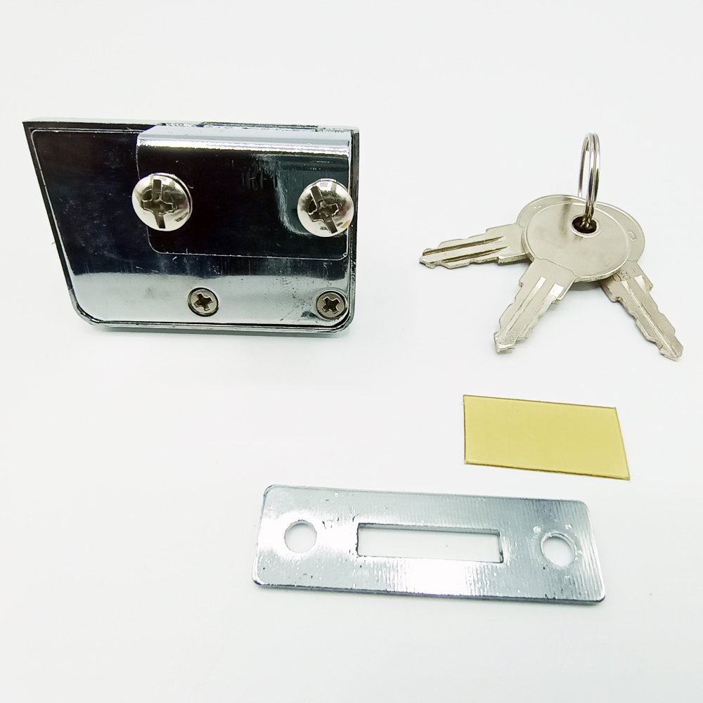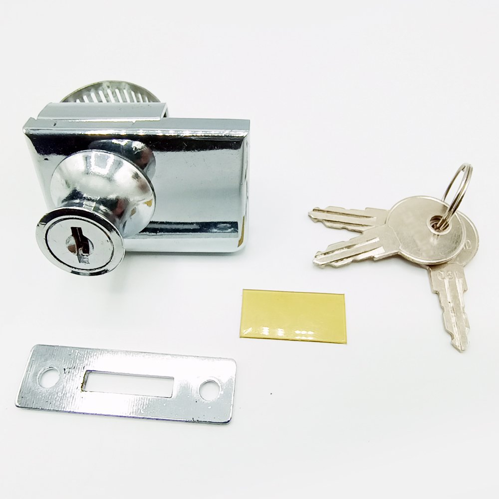 | Product Descriptions | Double glass show case door lock with 3 keys is made of long-lasting, thickened materials; The arc-shaped lock cylinder provides an additional layer of security while eliminating the need for drilling, making installation simple. The anti-slip gasket design adds to the lock’s stability by keeping it firmly in place. This adaptable lock is ideal for securing valuable items in glass showcases or cabinets. |