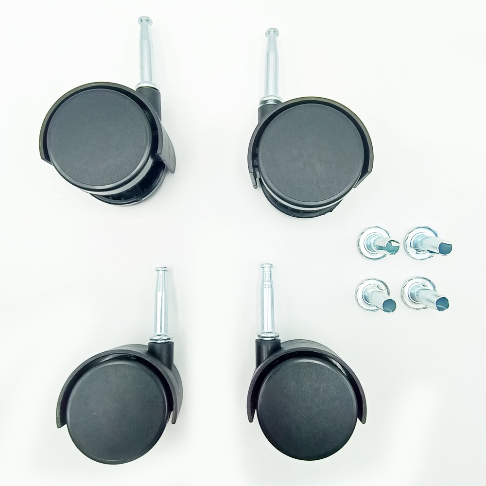 | Product Descriptions | The 50mm Nylon Twin Wheel Casters For office chairs, trolleys, and cupboards, These high-quality casters are finished in a stylish black. Plain bearings are made of durable plastic and ensure smooth and effortless rolling across a variety of surfaces, These casters can support heavy loads with a capacity of 75 lbs. |