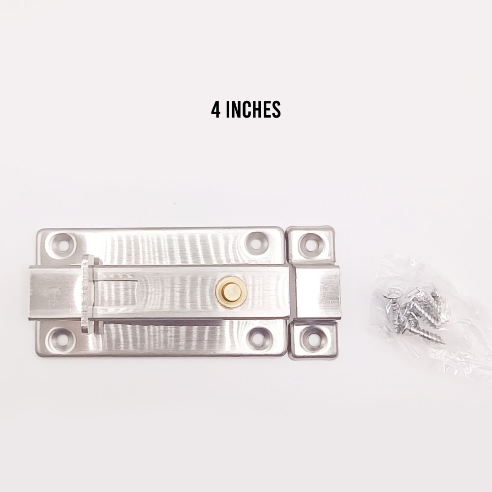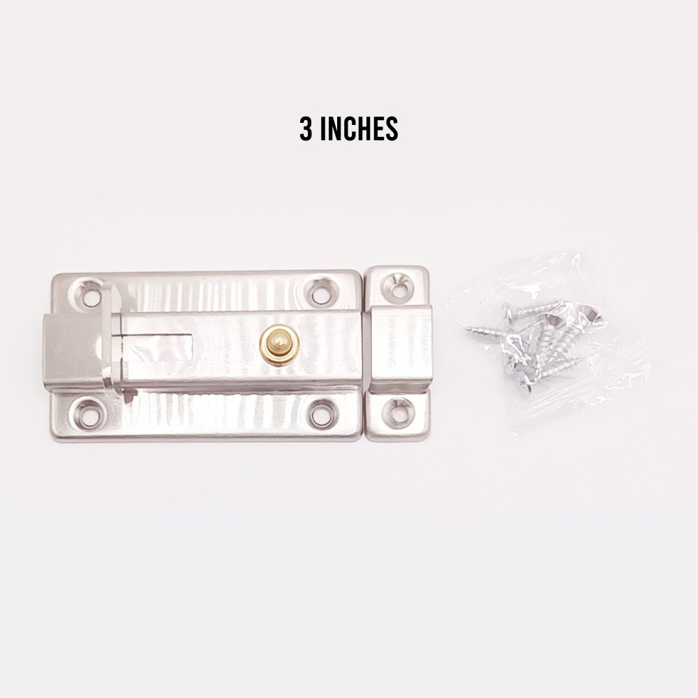 | Product Descriptions | 3 inches and 4 inches stainless steel tower Bolt can be used in various places such as doors, washrooms, etc. , it has a push-to-unlock mechanism that unlocks the gate by pressing up quickly and easily, and the package comes with screws which make simplifies the installation process. |