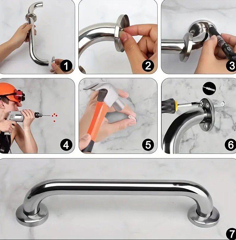 | Product Descriptions | The 8-inch and 10-inch Stainless Steel Bathroom Armrest Handle is made of durable, corrosion-resistant stainless steel, ensuring long-lasting use in any bathroom. Its simple installation technique ensures a secure fit, offering consumers rapid assistance, The modern, sleek shape of the handle not only complements diverse bathroom styles but also gives a touch of current elegance and adjusts to a variety of bathroom configurations thanks to numerous length options. |